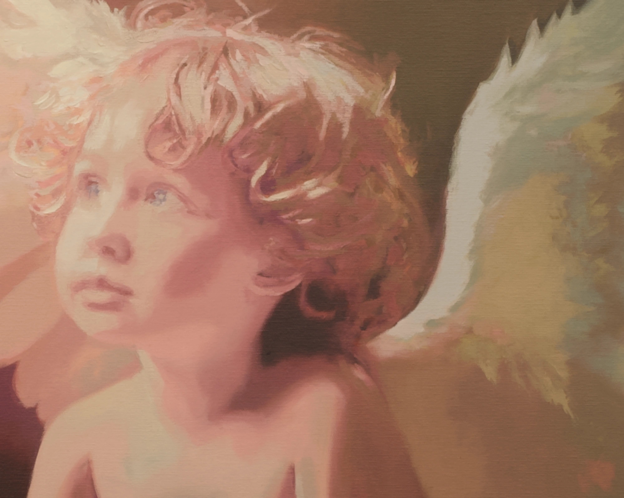 Un ángel infantil recibe su primera revelación divina en medio de objetos que hablan de conocimiento y belleza efímera. El tenebrismo barroco alcanza su máxima expresión: un haz de luz dorada atraviesa la oscuridad para iluminar la figura con intensidad casi cegadora. Los elementos del bodegón, flores marchitas, libros, bulbos latentes, funcionan como un vanitas reinventado que celebra no la muerte, sino el nacimiento de la conciencia. Una obra sobre comienzos y la transformación que llega cuando nos permitimos ver la luz.